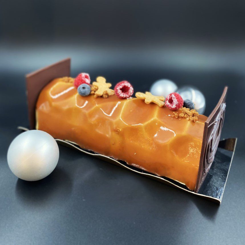 La mousse spéculoos met à l’honneur ce petit biscuit que tout le monde connait, accompagnant souvent le café en fin de repas. La framboise, avec sa saveur acidulée et son parfum subtil, est ici combinée au spéculoos pour un équilibre parfait entre douceur et fraîcheur. Ce mariage de saveurs est agrémenté d’un biscuit parfumé à la fève de tonka, épice d’origine caribéenne ou sud américaine. Chez Kautzmann, cette bûche Yoni rend hommage à ce duo original en y ajoutant des parfums qui tendent au voyage, il vous suffit de fermer les yeux !