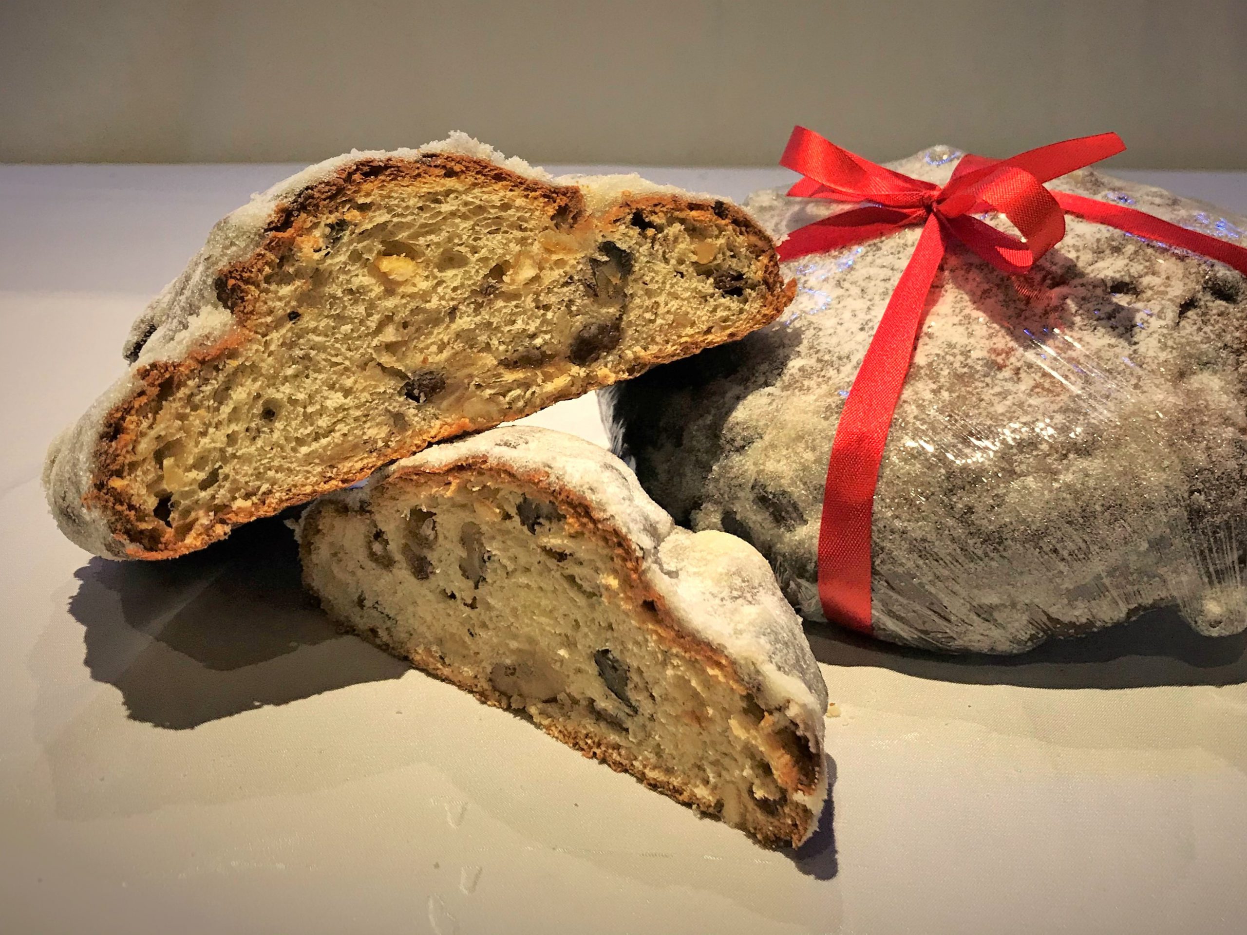 Le Christstollen est un gâteau traditionnel des fêtes de fin d’année, venu tout droit d’Allemagne et préparé avec passion par la Pâtisserie Kautzmann. Ce gâteau riche et moelleux, garni de fruits secs et parfumé aux épices de Noël, est une véritable ode à la tradition.