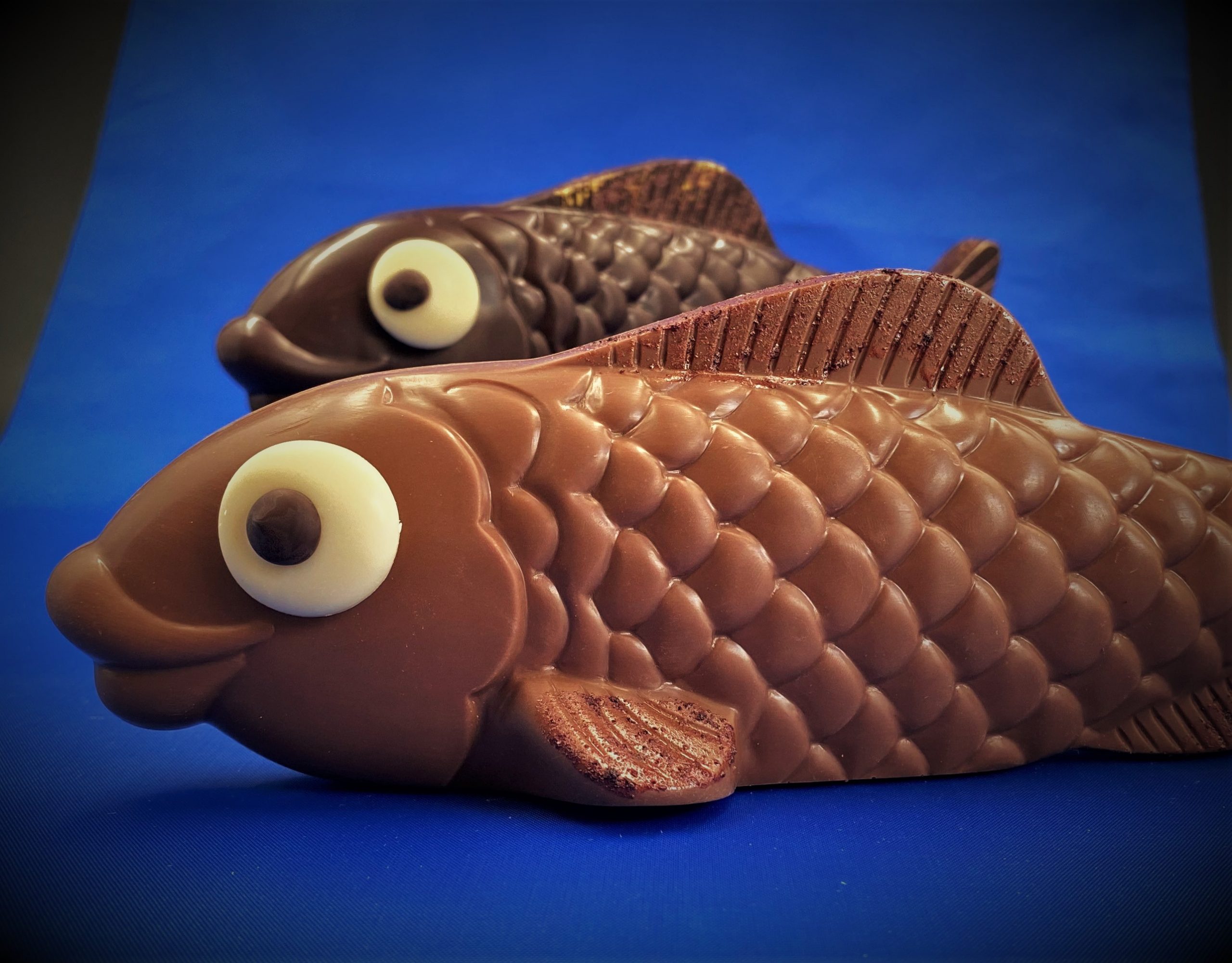 Les chocolatiers ont profité de cette double symbolique (Poisson d’Avril et tradition chrétienne) pour décliner leurs créations en forme de poissons, aux côtés des œufs, lapins et poules en chocolat.
