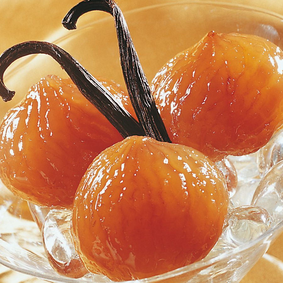 Véritables marrons confits et glacés au sirop à la vanille. C’est L’AUTRE produit hivernal exclusivement produit pendant les fêtes de fin d’année, comme les cerises au kirsch.